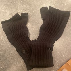 Svarta stickade handledsvärmare med flätor