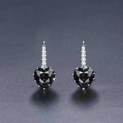 Fina 925S stämpel silver svart CZ zircon stenar örhängen creol pläterade hjärtan