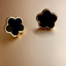 Vintage örhängen i guldton med svart emalj – elegant fyrklöverdesign