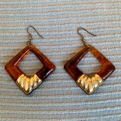 Vintage örhängen resin bruna guldfärgade MYCKET FINT SKICK öronkrokar hängande