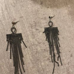 Örhängen med svarta långa fransar
