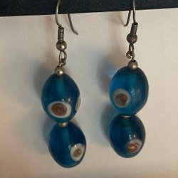Hängande örhängen med två avlånga blå glaspärlor med ” onda ögat ” på (5508)