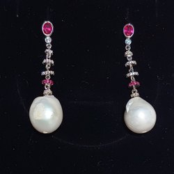 Eleganta örhängen med äkta barock kulturpärlor, rubiner och Swarovski silver