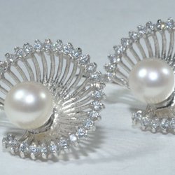 1 par örh i set m stenar/pärla vitguld 18k 7,3, V13287