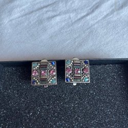 • Vintage clipsörhängen med glittrande ädelstenar