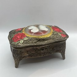 Vintage japanskt Smyckeskrin med fjäril och rosor