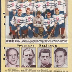 Tranås BOIS, bandylag fr RM nr 15-1953. På baksidan Åke Lundberg, skidor.