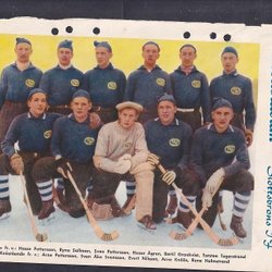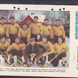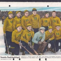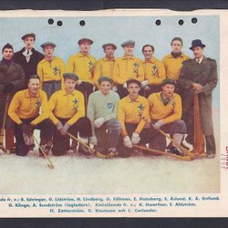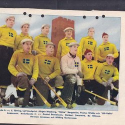 Svenska bandylandslaget, 3 gamla lagbilder fr RM. På baksidorna bla H.Hasu,Finl.