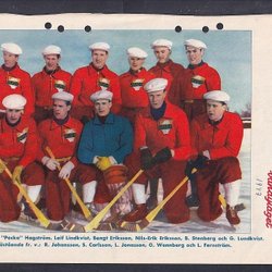 IK Huge, Gävle, bandylag fr RM 1951. På baksidan Sarah Thomasson. Åre.