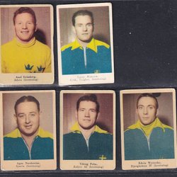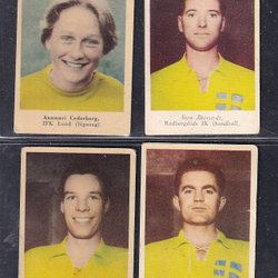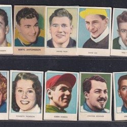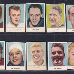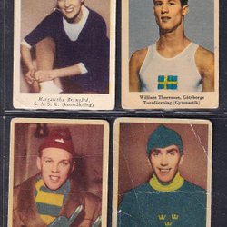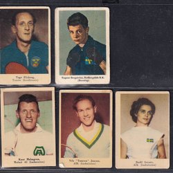 6 idrottsmän från Cloettas 30-talsserie bla Johan Richthoff o Ivar Johansson