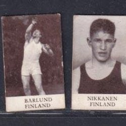 6 finska medaljörer från Alfa-serien Olympiaskylt 1936. Bla Nikkanen.