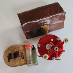 Abu ambassadeur 5000 med etui i läder. ABU Svängsta multirulle, ask i skinn. Fin