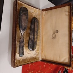 70s set med spegel, kam och borste i etui - resetillbehör
