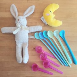 Babykit, Kanin gosedjur, mångosedjur & skedar perfekt till blöjtårta babyshower