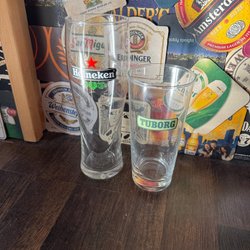 Glas med Heineken , Pripps fatöl, och S tryck.