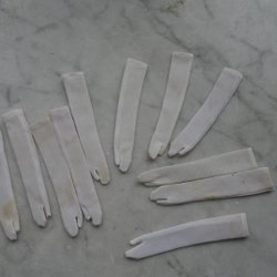 60-tal: Långa vita handskar (ej rena) - 5 par + en udda - Barbie - Mattel