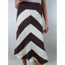 Skjørt med høyt liv str. 36 til 50 i beige stripet lin