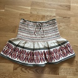 Lindex vit, orange, blå kjol, storlek XS
