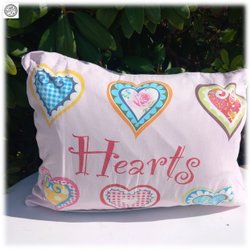 Underbart örngott kuddfodral färgrannt med hjärtan text Hearts i fint skick