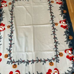 Julduk med tomtar. Tryckt mönster på kraftig väv.127 x 180 cm.