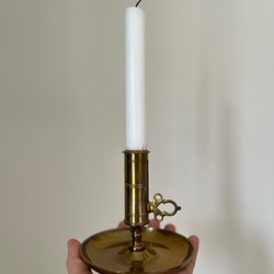Vacker stor mässingsljusstake med handtag, vintage