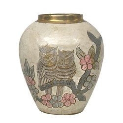 Vintage dekorativ vas - Ugglor och blommor i relief - Handarbetad med mässingsde
