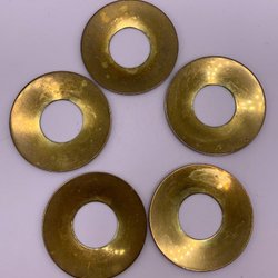 RETRO/ 5 st ÄLDRE LJUSMANSCHETTER I ÄKTA MÄSSING TROLIGEN FRÅN GUSUM