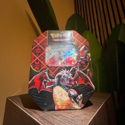 Paldean Fates Tin – Charizard ex – Sealed & Ny – Gåva medföljer