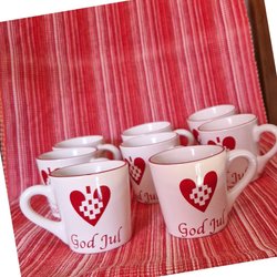 Två kaffekoppar med fat, Design Mariehult Sweden,jul,advent