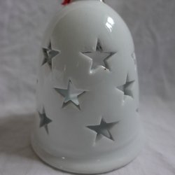 Ljuslykta i porslin, Julklocka, klocka med stjärnor vit