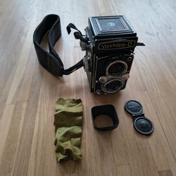 Yashica-D TLR Kamera m vissa tillbehör