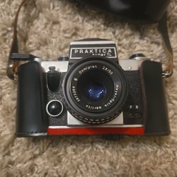 Analoga kameror Praktica& Konica + objektiv