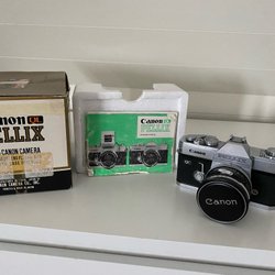 Canon AV-1 Systemkamera med tillbehör