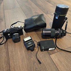 Nikon FE2 Kamera med Tillbehör