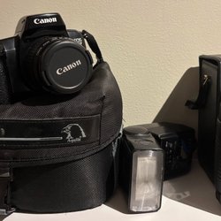 Canon Kamera med objektiv och blixt