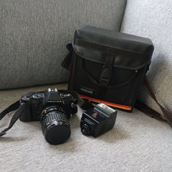 Pentax ME Asahi med objektiv och tillbehör