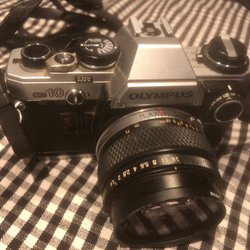 Olympus OM-2 35mm systemkamera med objektiv