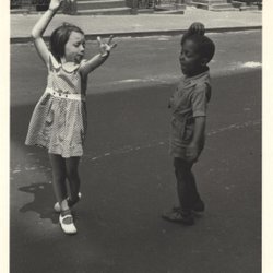 Vykort "New York, ca 1942" Helen Levitt, barn/lek/antiracism