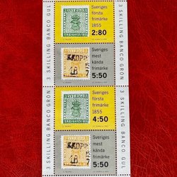 Världens mest berömda och näst dyraste frimärke är faktiskt svenskt: den gula treskillingen som även kallas för gul tre skilling banco. Dyrgripen är poststämplat i Nya Kopparberget den 13 juli 1857. Det var meningen att frimärket skulle ha tryckts i en blå-grön färg tillsammans med tre-schilling-trycket, men istället trycktes det i gult. Detta feltryckta svenska frimärke gavs ut 1855 och är det enda kända överlevande exemplaret, med i dagsläget ett uppskattat värde på över 2,1 miljoner euro. Frimärket har blivit sålt mer än en gång, och det fortsätter hela tiden att stiga i värde då det är det mest eftertraktade svenska frimärket.