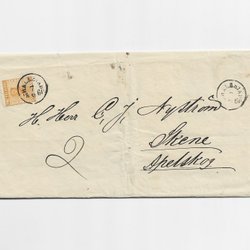 F10 24 öre Vapen Halmstad 1860 N/HA, dubbelporto till Skene, Apelskog P/VG