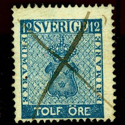 Sverige | F 9 c3 | 12 öre blå, perf 1865 | Nyans Mgn