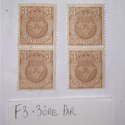 F73 * 3 öre * 2 lodräta par *Postfriskt
