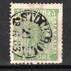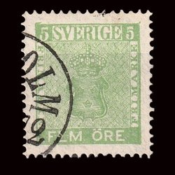 F7 | Vapentyp | 5 öre grön | SOCKHOLM NORR 24-8-1870 | Perfekt placerad stämpel