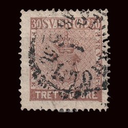 F11 | 1858 | Vapentyp II | 30 öre brun | | Stämplat 16/8-18