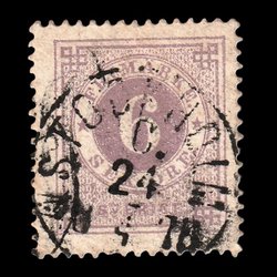 F20 | Ringtyp | T14 | 6 öre violett | Helsingborg 22/10- 1876 | Skåne | Stämpla