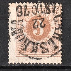 F24| 1872-76 | Ringtyp | T14 | 24 öre orange | Stämpel: Lindesberg