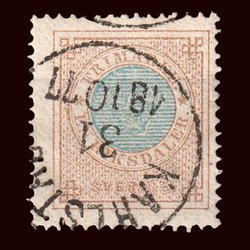 F27 | 1872-76 | Ringtyp | T14 | 1 Riksdaler brun o blå | Kv 750:- | Stämplat ex