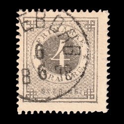 F18 | Ringtyp | T14 | 4 öre grå | Kv 1300:- | Stämplat Göteborg 6/6-1878