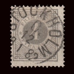 F29 | 1877-79 | Ringtyp, 4 öre grå | T13 | Stämplat Sthlm 12/1-1882