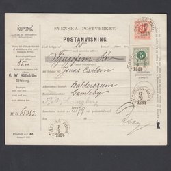 Sverige Oskar nr 45 10 öre stämplat Segmon 20-11-1888.